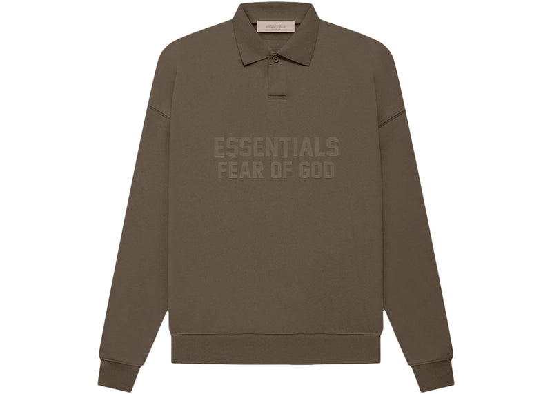 The Fear of God Essentials Women's L/S Polo Wood is now available at Side Kicks!