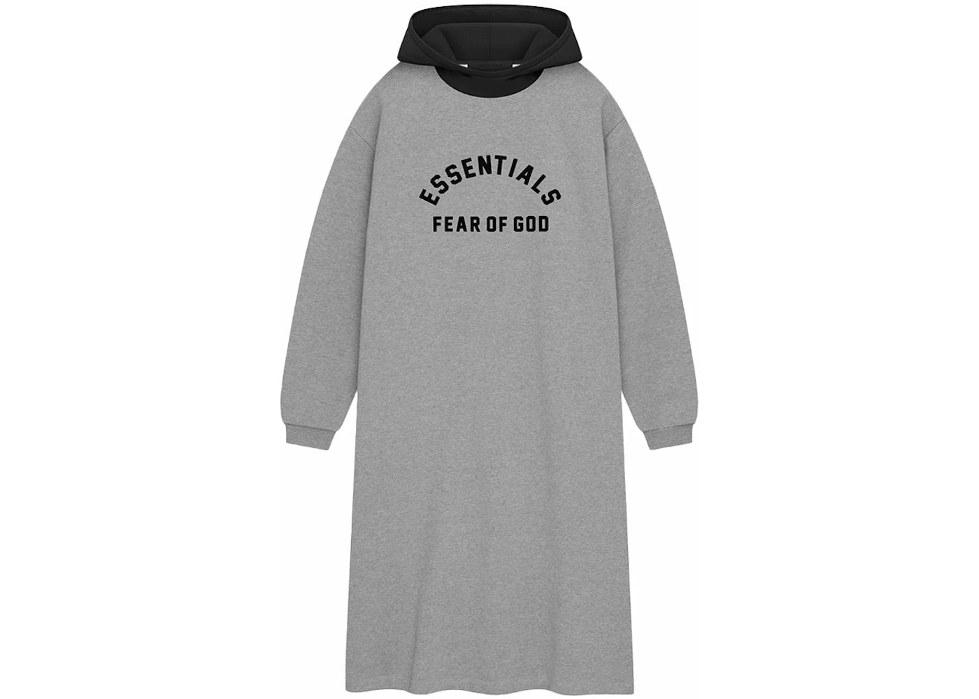 The Fear of God Essentials Women's Nylon Fleece Hooded Dress Dark Heather Oatmeal/Jet Black is now available at Side Kicks!