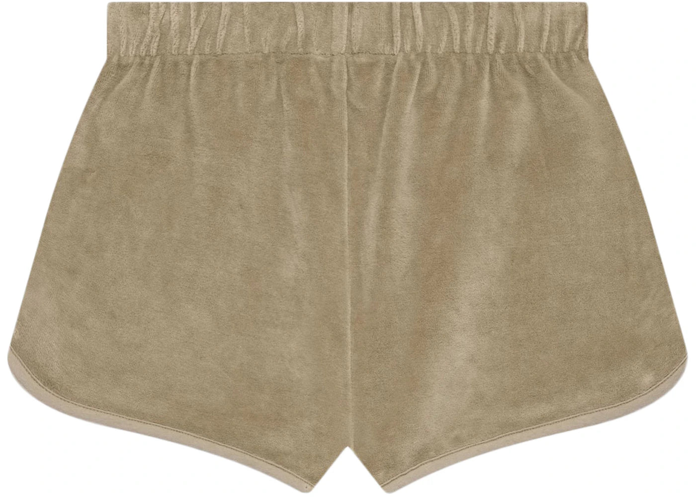 The Fear of God Essentials Women's Velour Beach Short Oak is now available at Side Kicks!