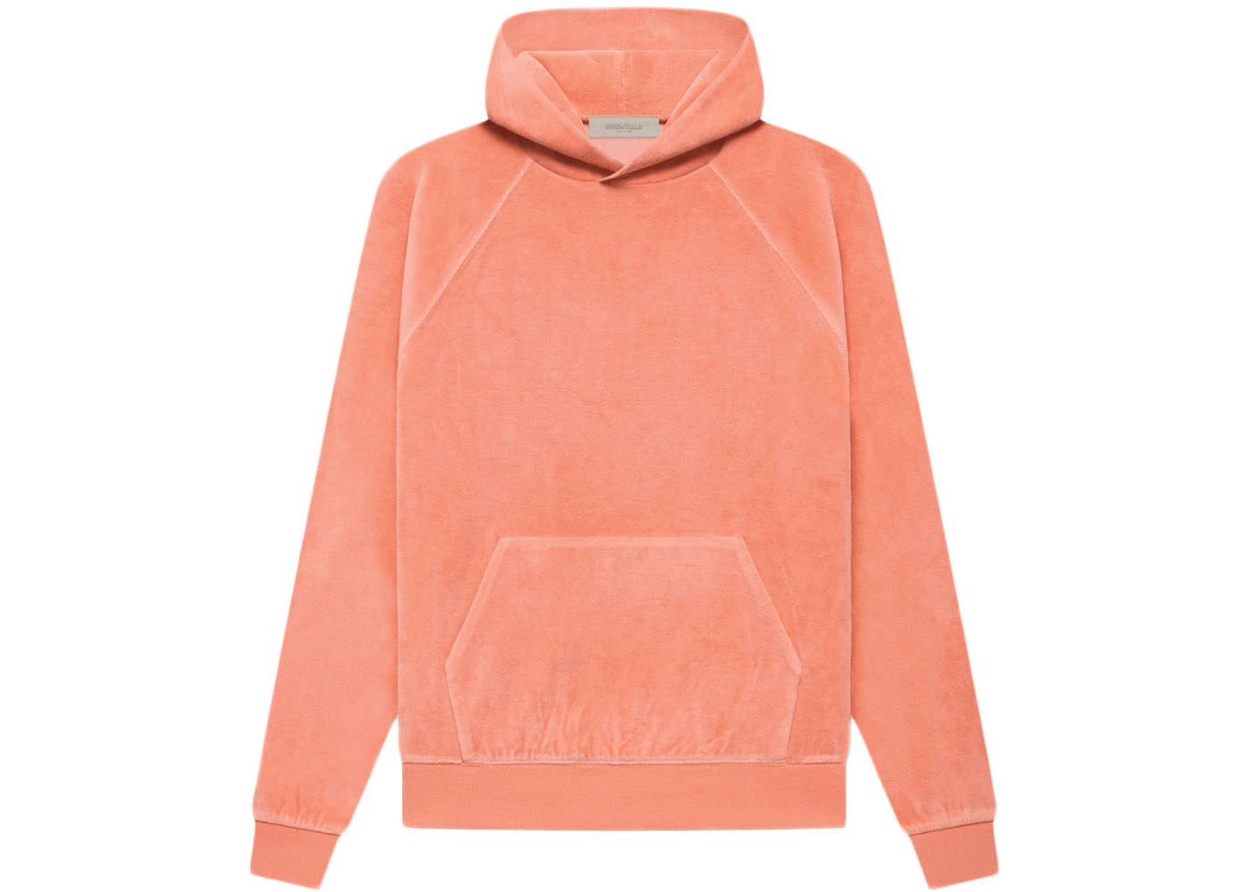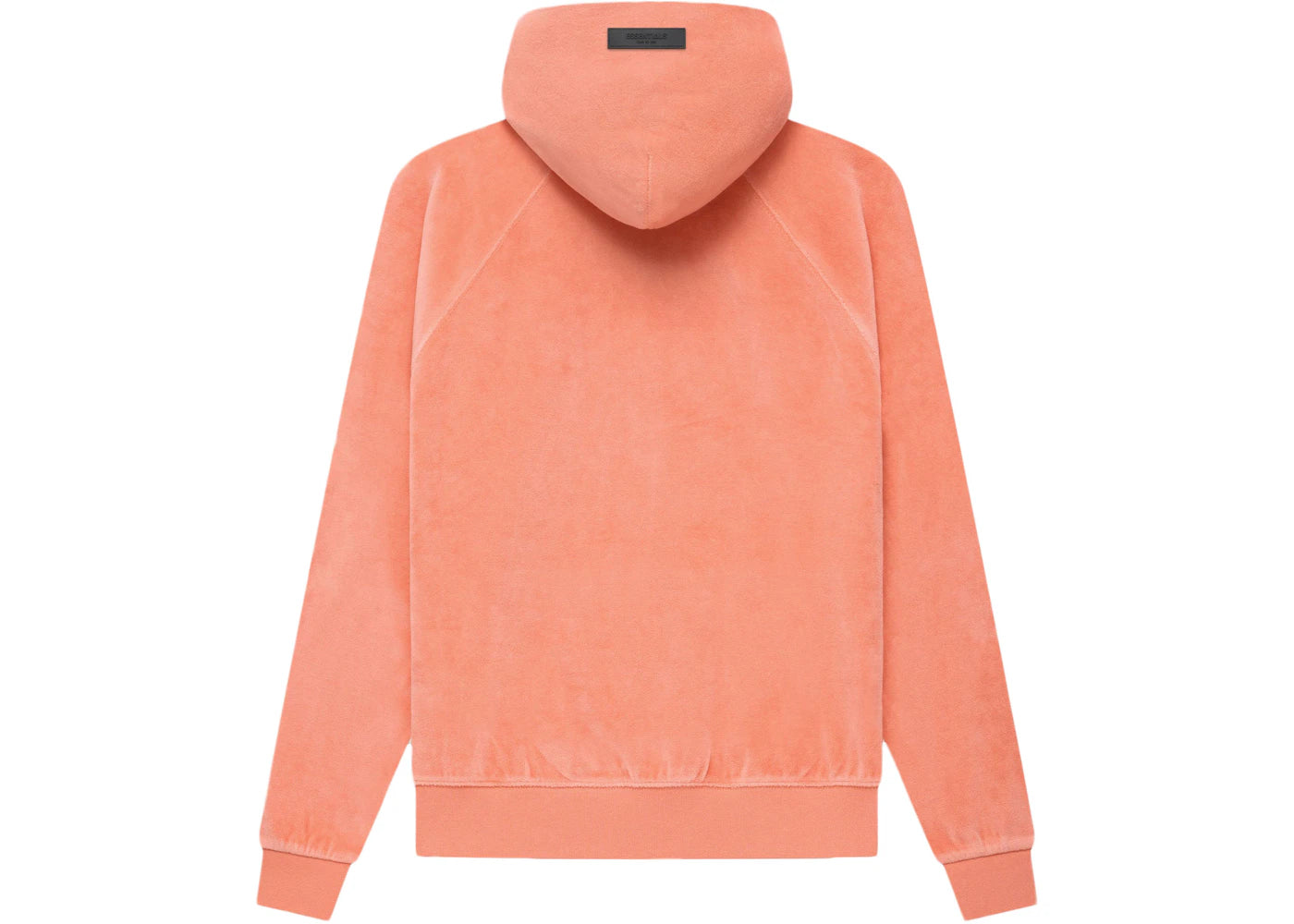 The Fear of God Essentials Women's Velour Hoodie Coral is now available at Side Kicks!