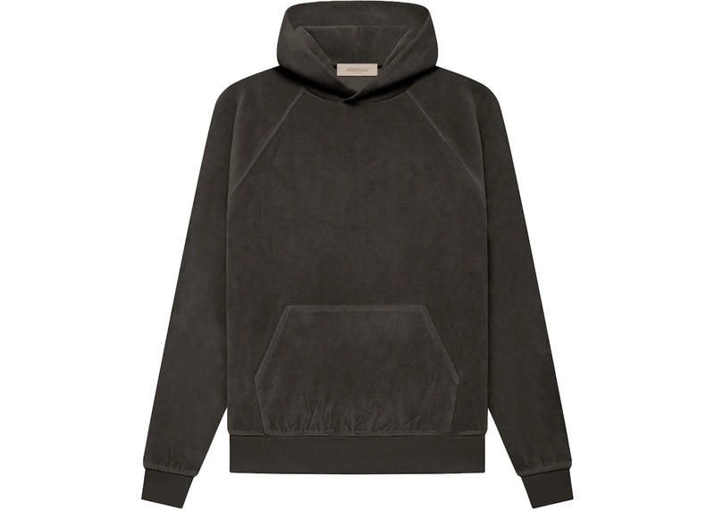 The Fear of God Essentials Women's Velour Hoodie Off Black is now available at Side Kicks!