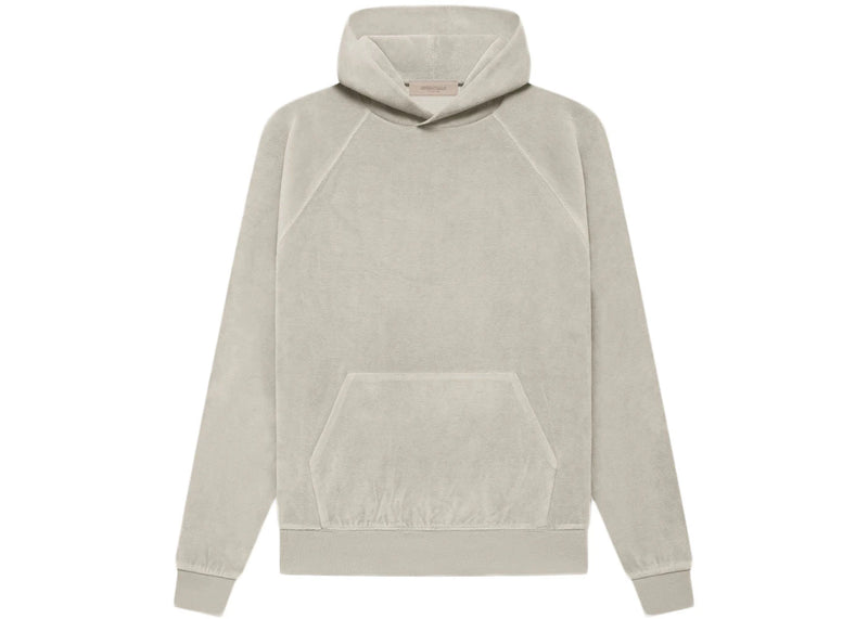 The Fear of God Essentials Women's Velour Hoodie Smoke is now available at Side Kicks!