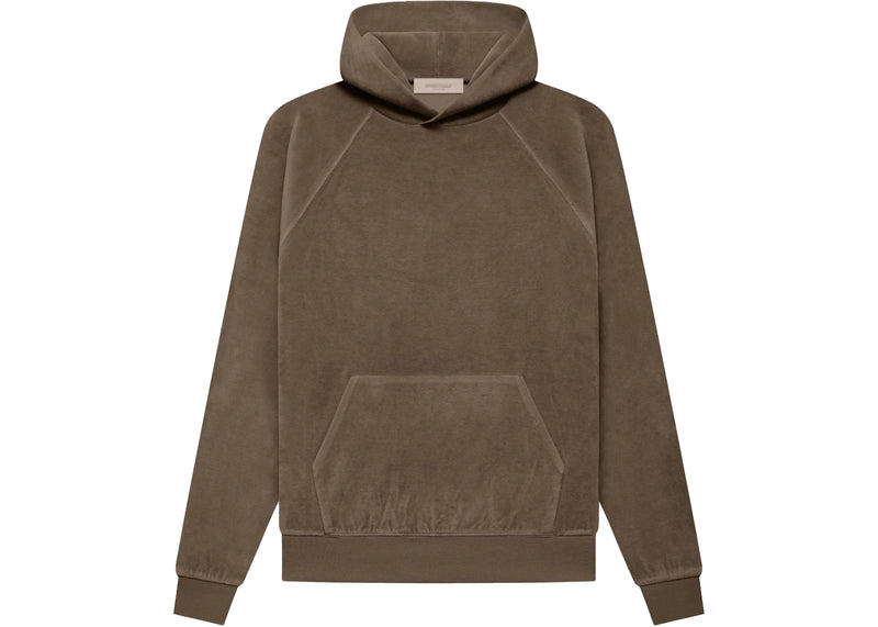 The Fear of God Essentials Women's Velour Hoodie Wood is now available at Side Kicks!