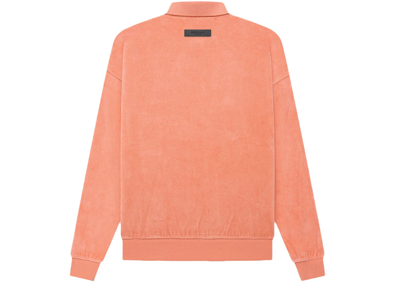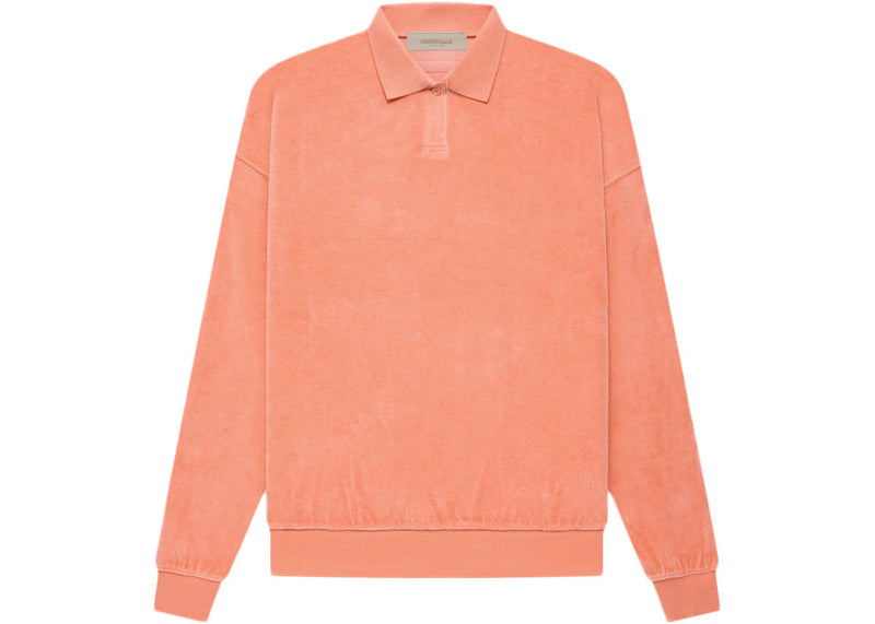 The Fear of God Essentials Women's Velour L/S Polo Coral is now available at Side Kicks!
