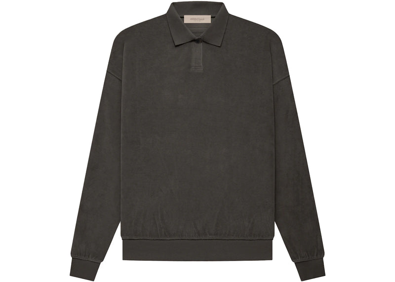 The Fear of God Essentials Women's Velour L/S Polo Off Black is now available at Side Kicks!