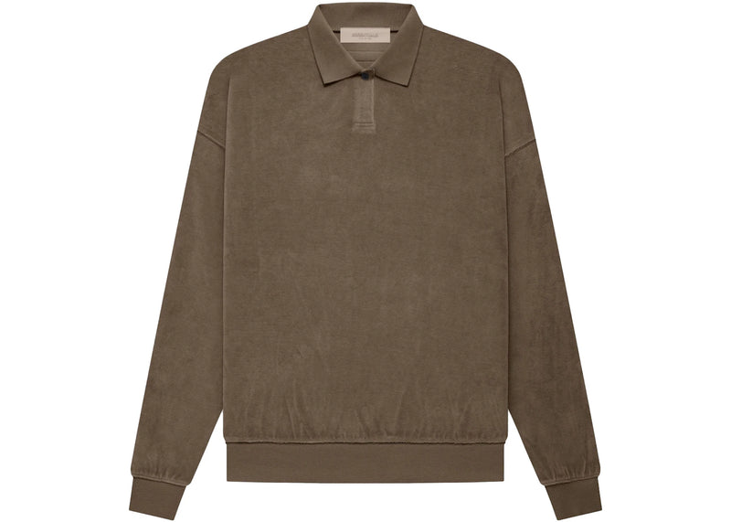 The Fear of God Essentials Women's Velour L/S Polo Wood is now available at Side Kicks!