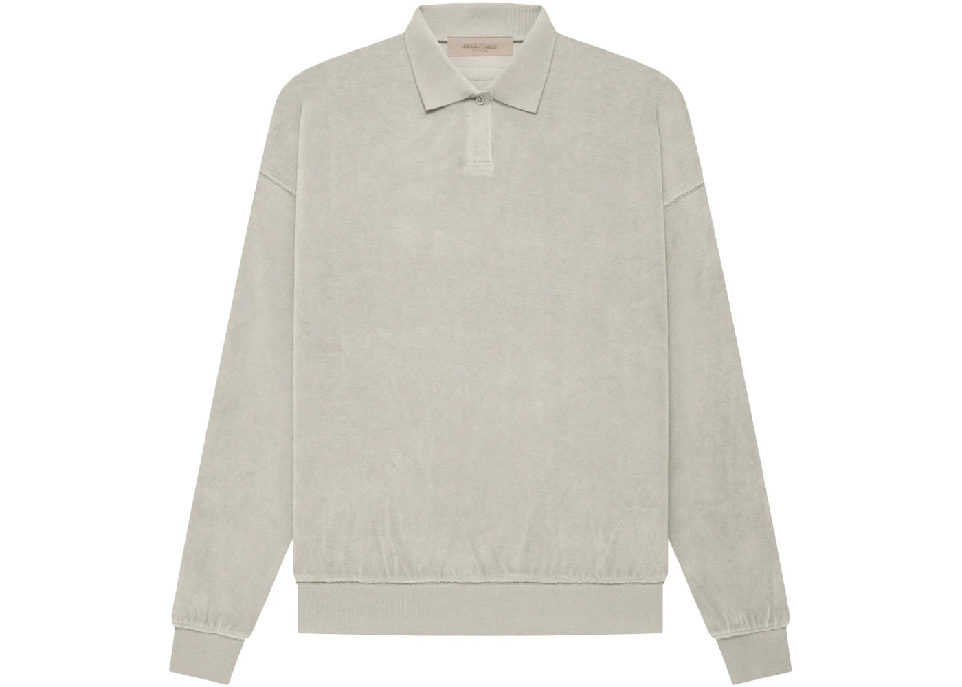 The Fear of God Essentials Womens Velour LS Polo Smoke is now available at Side Kicks!