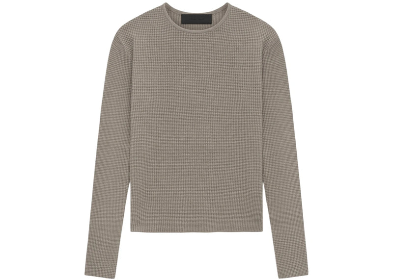 The Fear of God Essentials Women's Waffle Fitted Long Sleeve Sweater Heather Gray is now available at Side Kicks!