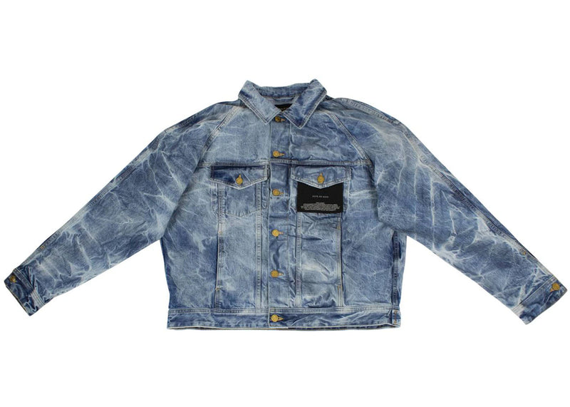The Fear of God Indigo Selvedge Denim Holy Water Trucker Denim Jacket Indigo is now available at Side Kicks!