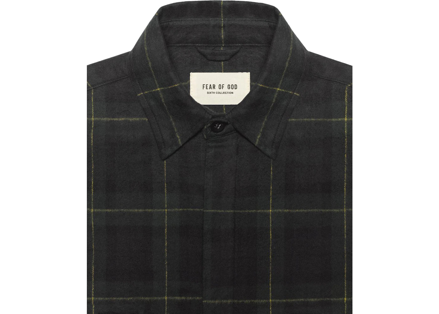 The Fear of God Long Sleeve Plaid Button Up Shirt Green is now available at Side Kicks!