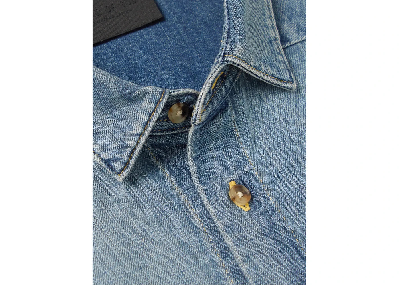 The Fear of God Mr. Porter Exclusive Distressed Denim Shirt Blue is now available at Side Kicks!