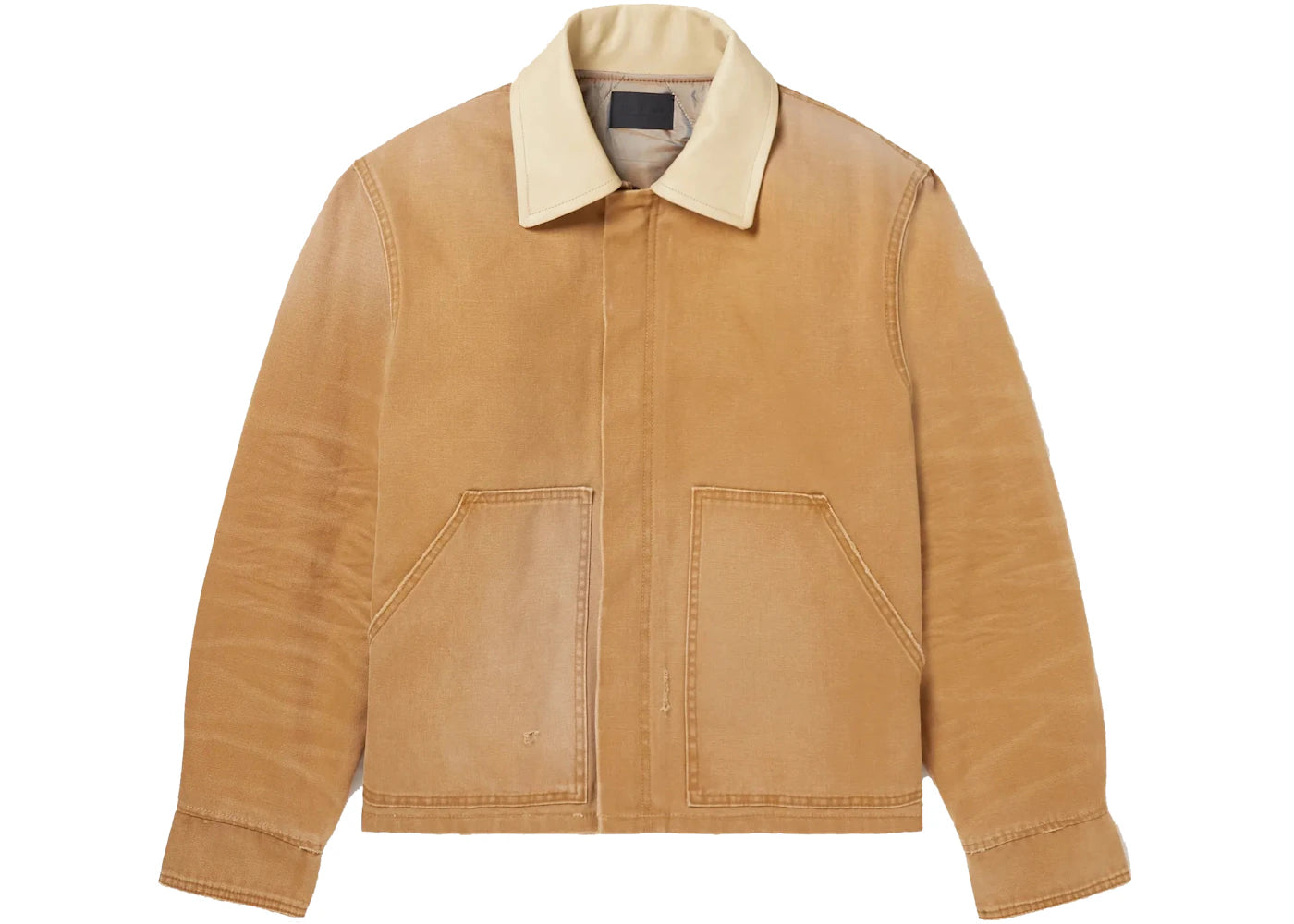 The Fear of God Mr. Porter Exclusive Leather-Trimmed Distressed Canvas Jacket Light Brown is now available at Side Kicks!