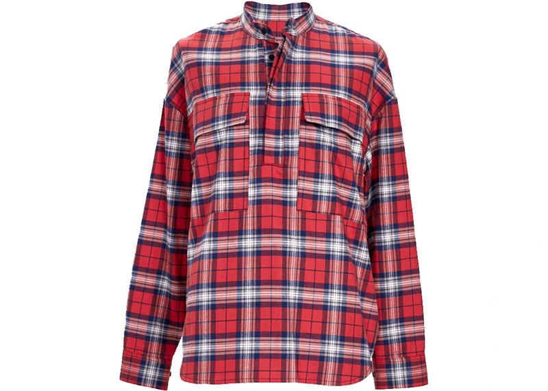 Fear of God Plaid Pullover Henley Shirt Red/White/Navy