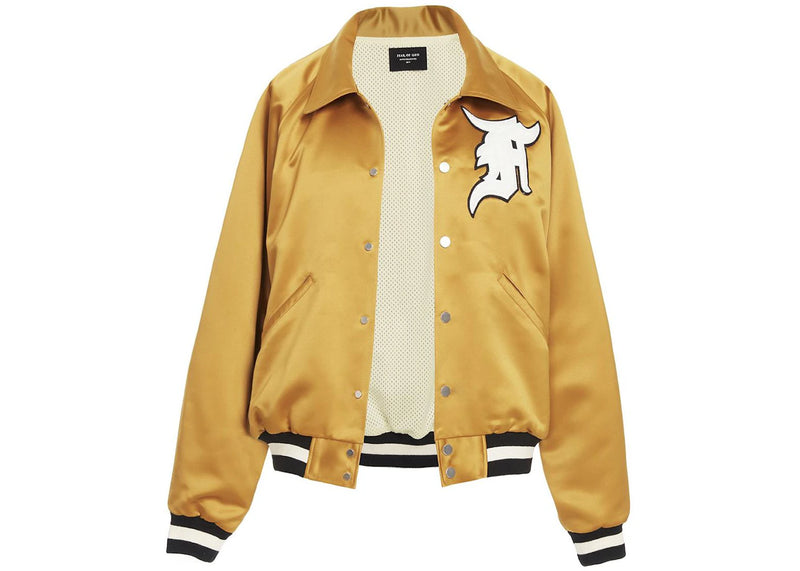 The Fear of God Satin Baseball Coach Jacket Gold is now available at Side Kicks!
