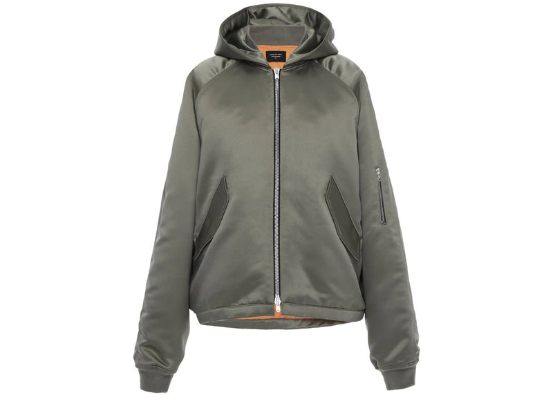 The Fear of God Satin Hooded Bomber Jacket Sage is now available at Side Kicks!
