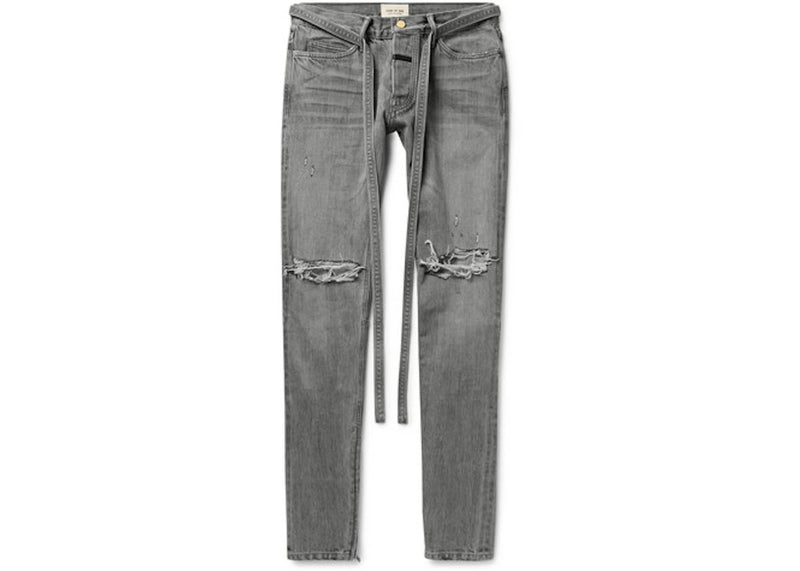 The Fear of God Skinny Fit Distressed Denim with Ankle Zippers Janes God Grey is now available at Side Kicks!