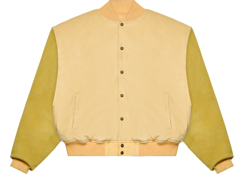 The Fear of God Varsity Jacket Garden Glove Yellow is now available at Side Kicks!
