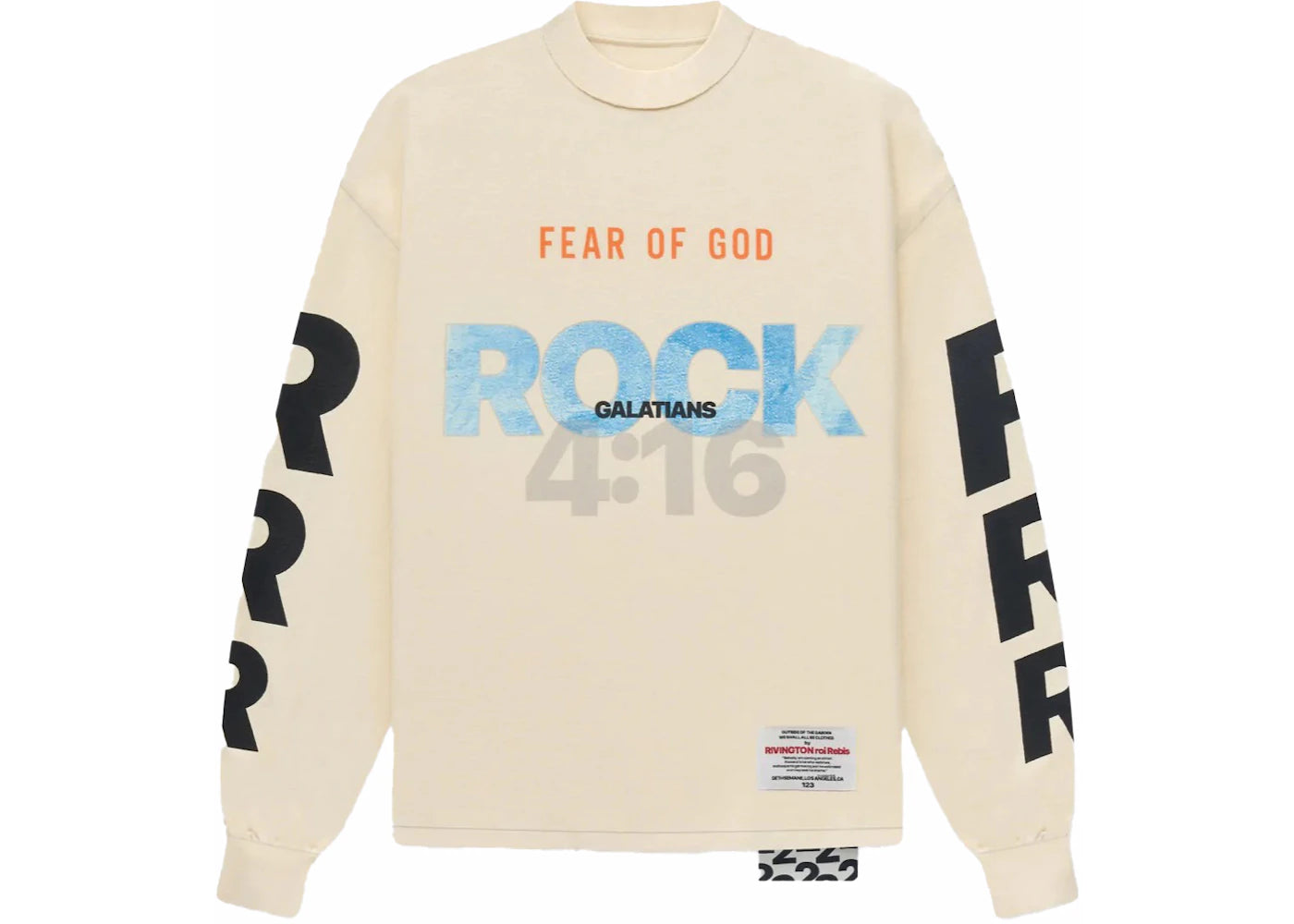 The Fear of God x RRR-123 for Dave Chappelle L/S T-shirt Cream is now available at Side Kicks!