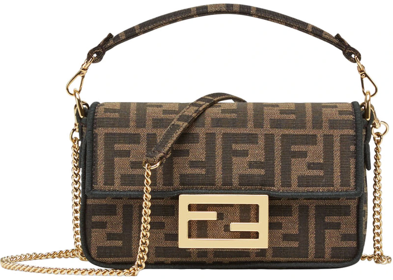 The Fendi Baguette Mini Jacquard FF Fabric Bag Brown is now available at Side Kicks!