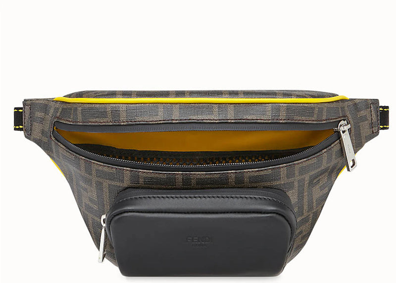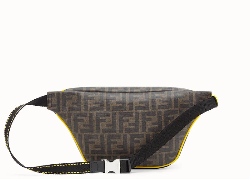 The Fendi Belt Bag FF Fabric Yellow Piping Brown/Black is now available at Side Kicks!