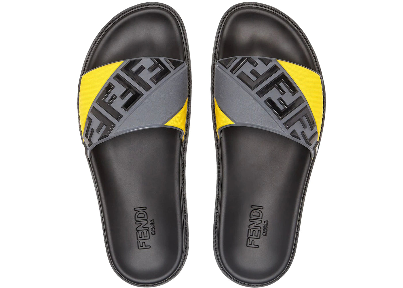 The Fendi Slides Multicolor Grey Yellow is now available at Side Kicks!