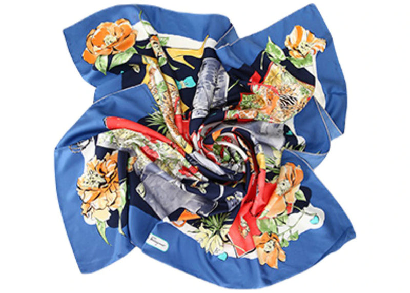 The Ferragamo Fo Shopping Scarf Blue is now available at Side Kicks!