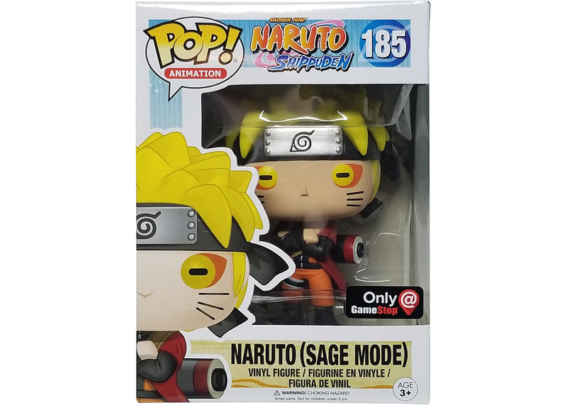 The Funko Pop! Animation Naruto Shippuden Naruto (Sage Mode) figure was a GameStop exclusive. The Funko Pop! showcases Naruto in his powerful Sage Mode, outfitted with the iconic toad eyes, and sage scroll on his back.