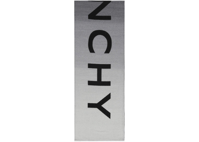 The Givenchy Degrade Logo Scarf Black/Grey is now available at Side Kicks!