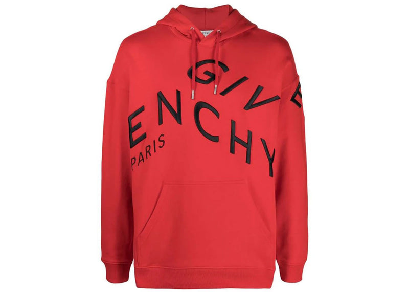 The Givenchy Refracted Embroidered Logo Hoodie Red/Black is now available at Side Kicks!