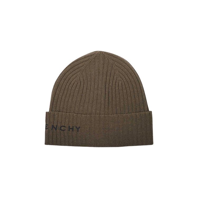 The Givenchy Ribbed Embroidered Logo Beanie Khaki/Black is now available at Side Kicks!