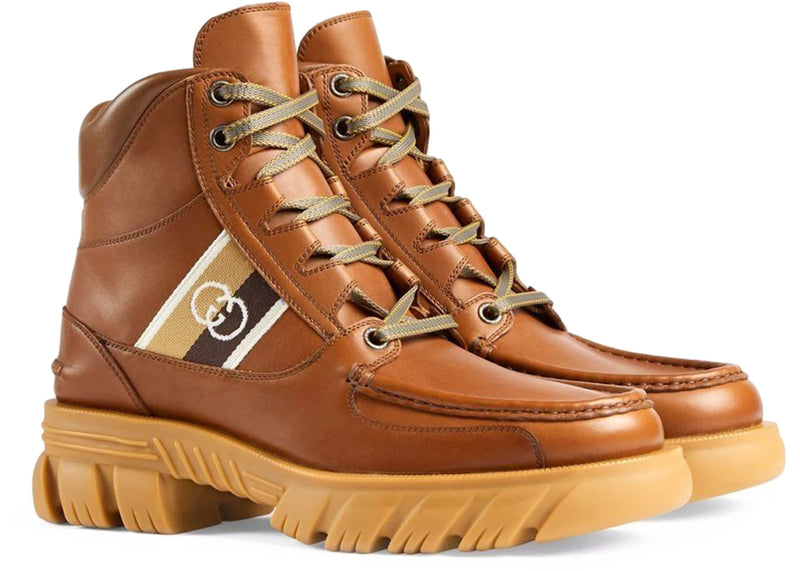 The Gucci Ankle Boot with Interlocking G Brown is now available at Side Kicks!