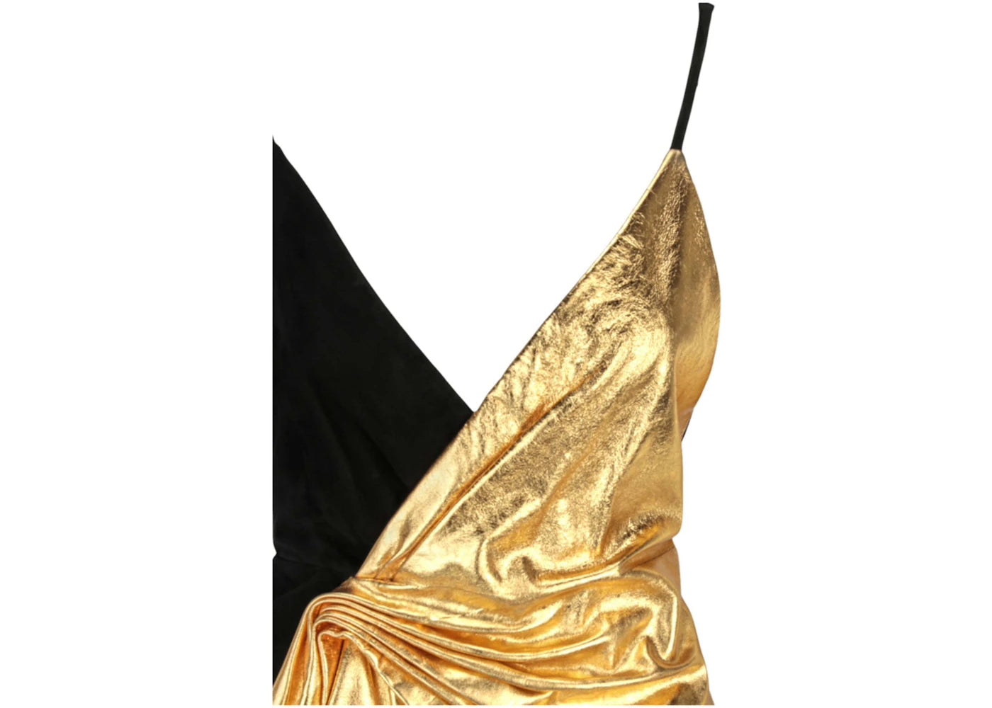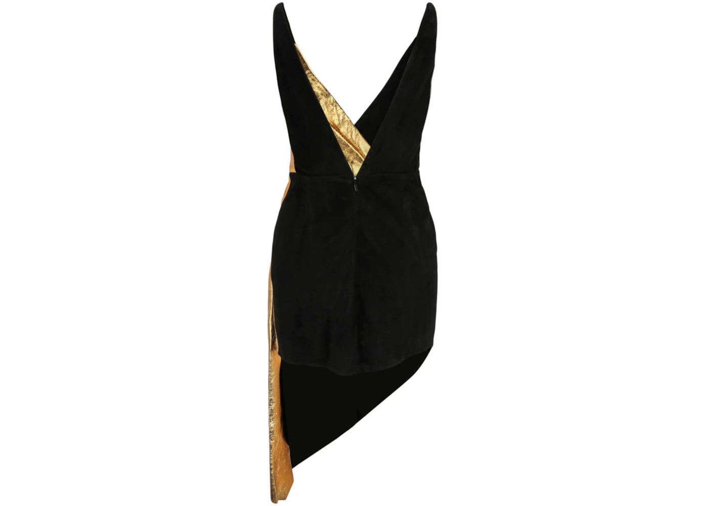 The Gucci Asymmetric Suede Mini Dress Black/Gold is now available at Side Kicks!