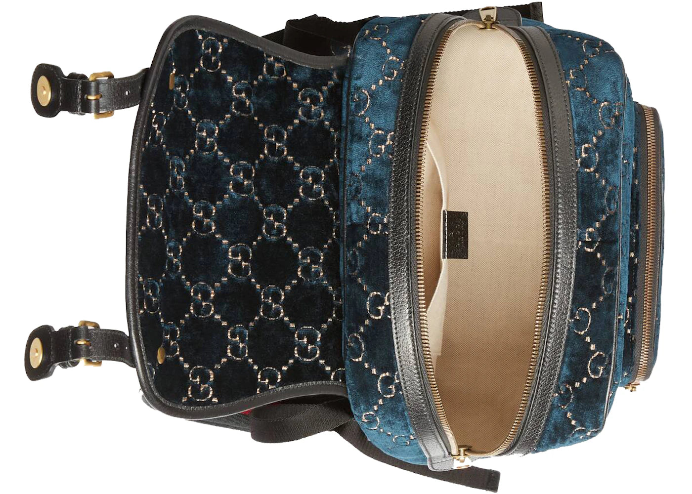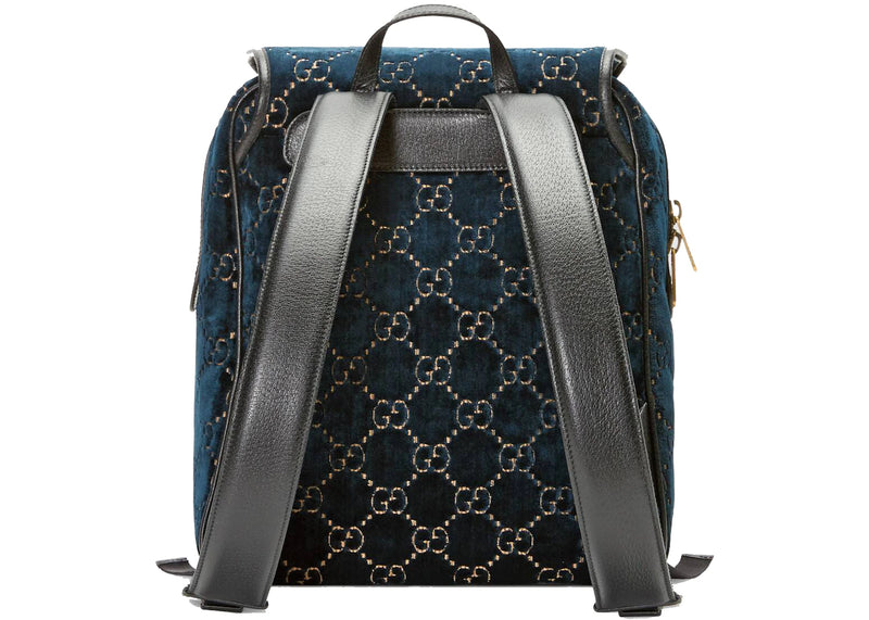 The Gucci Backpack GG Velvet Small Dark Blue is now available at Side Kicks!