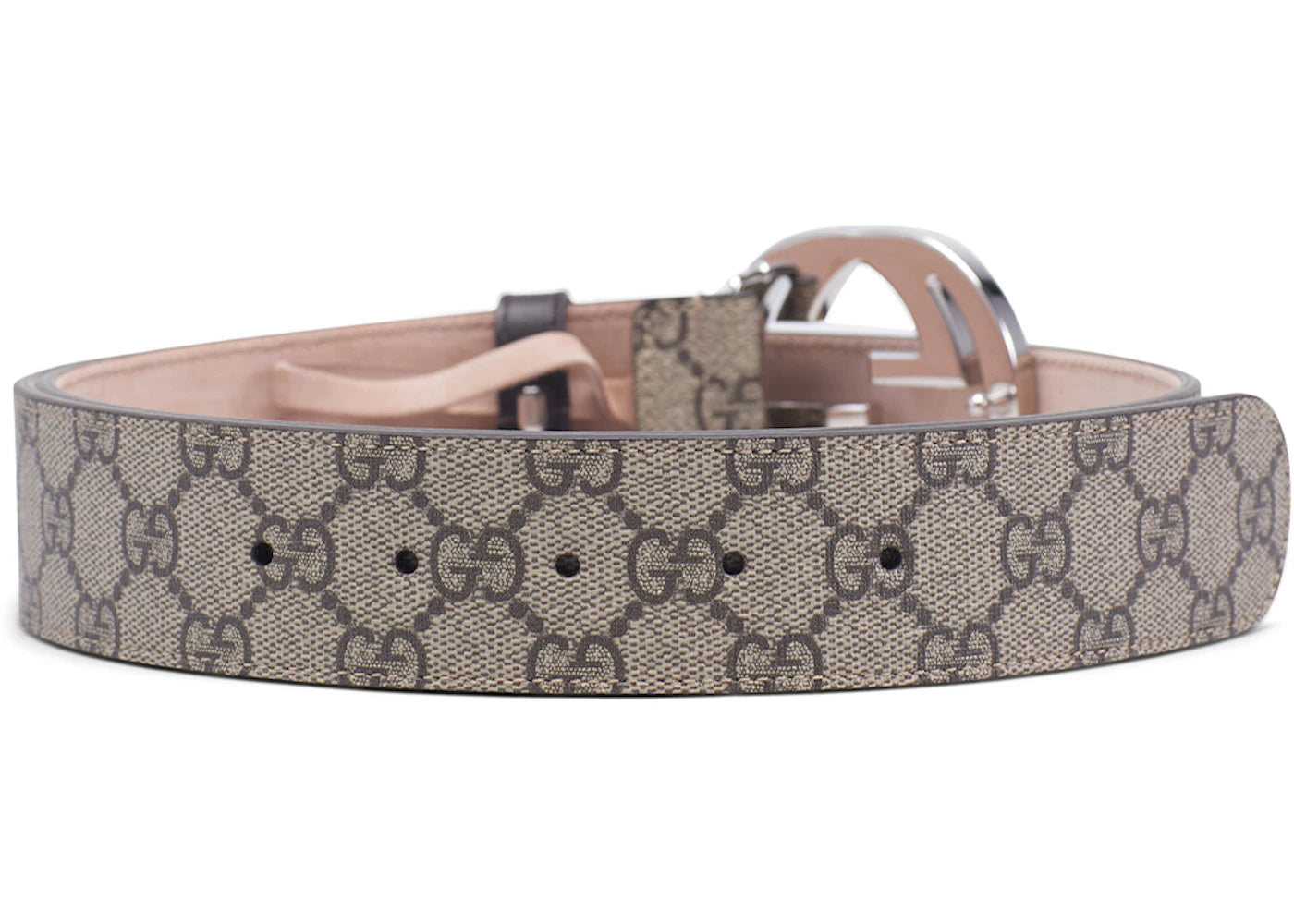 The Gucci Belt GG Supreme Interlocking G Buckle 1.5W Beige Ebony/Cocoa is now available at Side Kicks!
