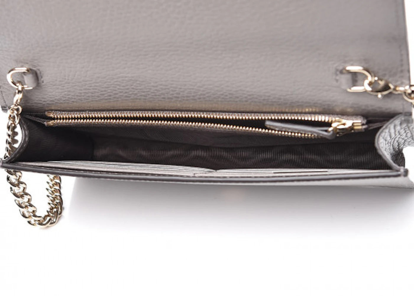 The Gucci Betty Chain Wallet Interlocking G Medium Grey is now available at Side Kicks!