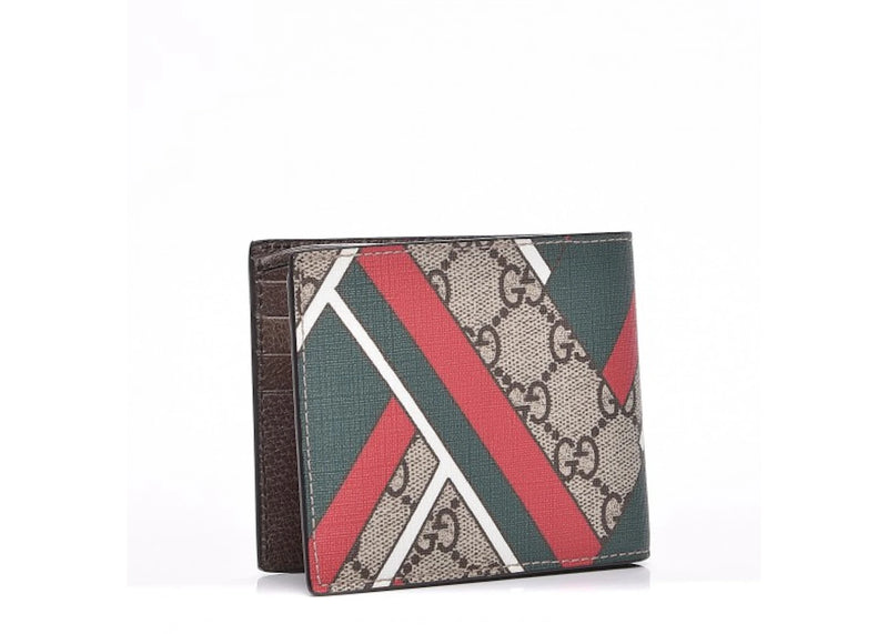Gucci Bifold Wallet GG Supreme Chevron Green/Red