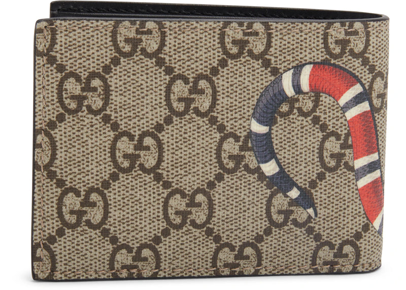 Gucci Bifold Wallet GG Supreme Kingsnake (4 Card Slots) Beige