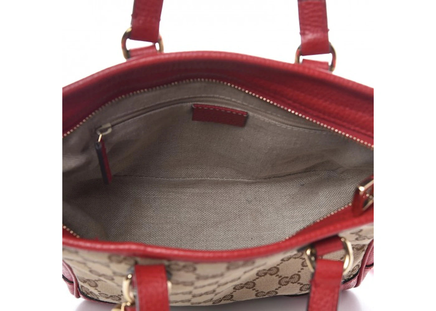 The Gucci Bree Tote GG Supreme Small Beige/Red is now available at Side Kicks!