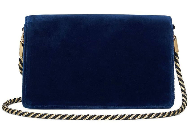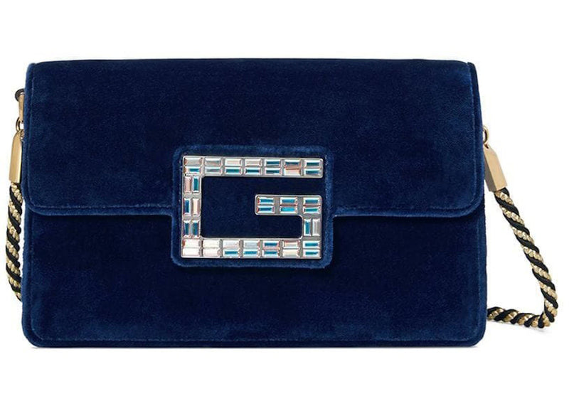 The Gucci Broadway Shoulder Bag Velvet Jeweled G Blue is now available at Side Kicks!