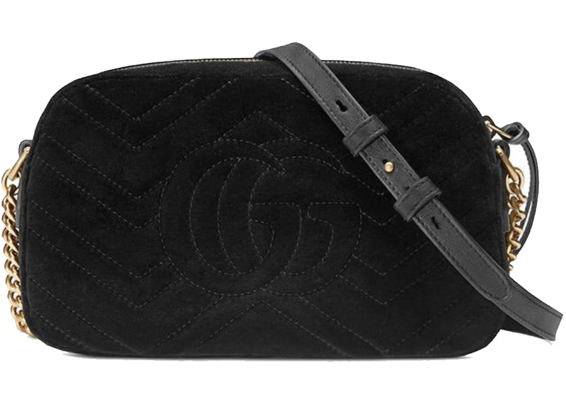 The Gucci Camera Bag GG Marmont Velvet Small Black is now available at Side Kicks!