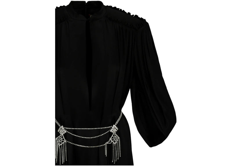 The Gucci Cape Sleeve Open Front Crystal-Embellished Belted Gown Black is now available at Side Kicks!