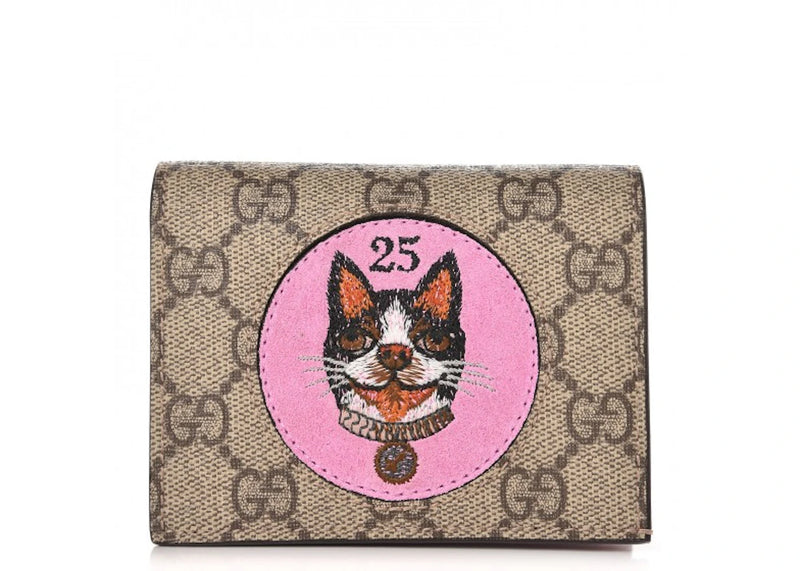 The Gucci Card Case Wallet GG Supreme Bosco Patch Red Lining is now available at Side Kicks!