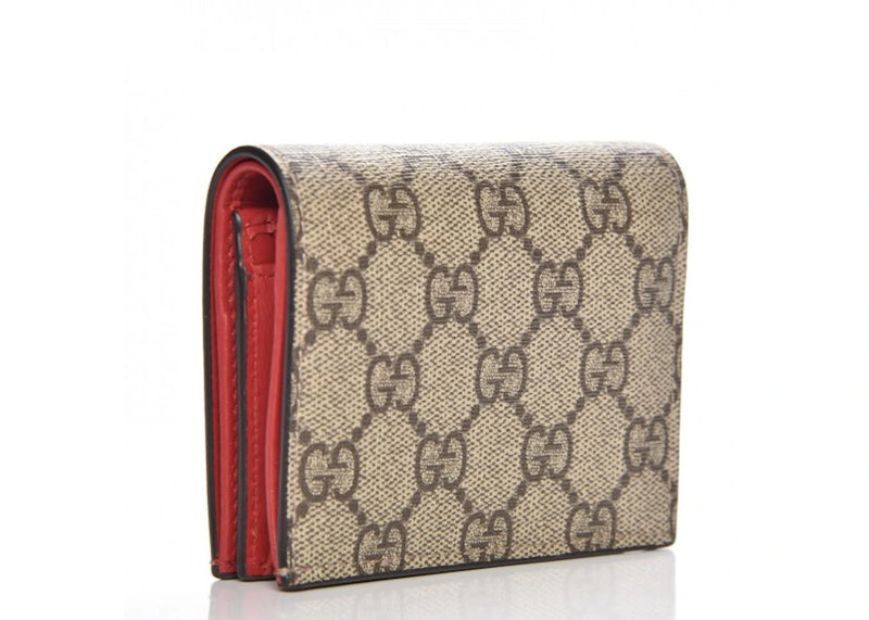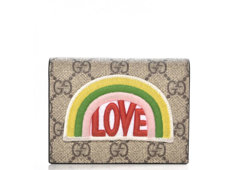 The Gucci Card Case Wallet GG Supreme Rainbow Beige/Hibiscus Red is now available at Side Kicks!