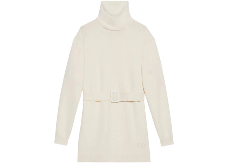 The Gucci Cashmere Wool With GG Patch Turtleneck Top Ivory is now available at Side Kicks!
