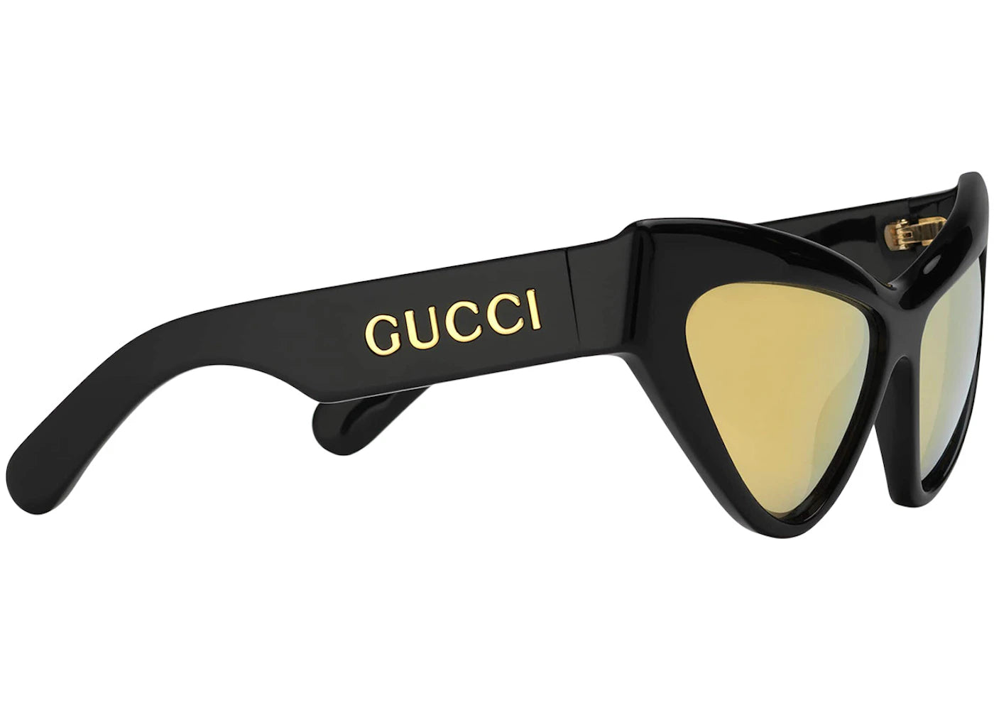 The Gucci Cat-Eye Frame Sunglasses Shiny Black/Gold-tone/Solid Brown Lens (733344 J0740 1080) is now available at Side Kicks!