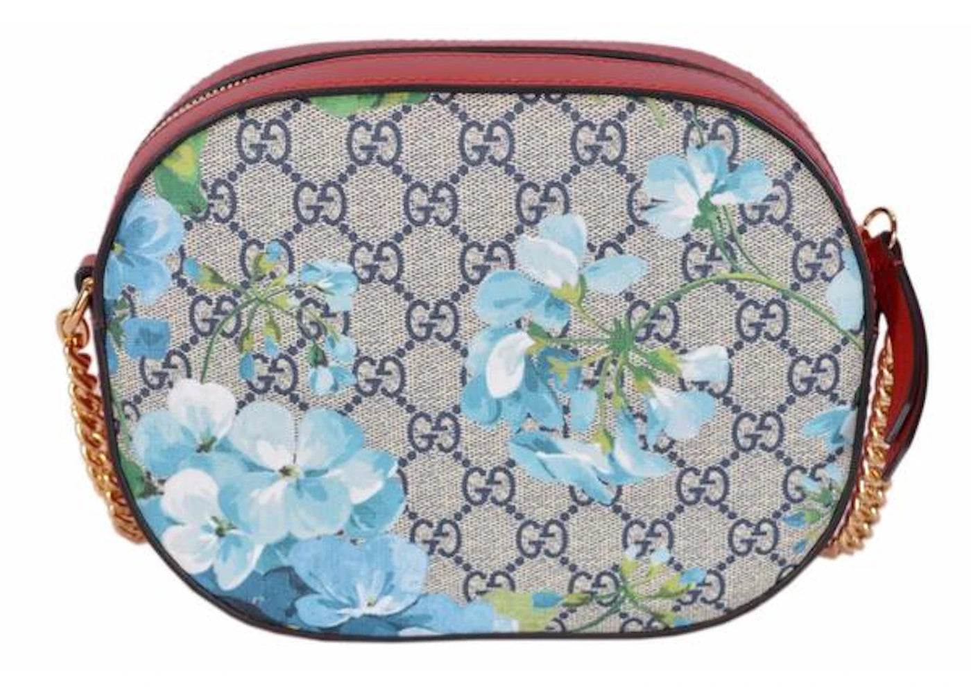 The Gucci Chain Crossbody GG Supreme Blooms Chain Strap Small Blue/Red is now available at Side Kicks!
