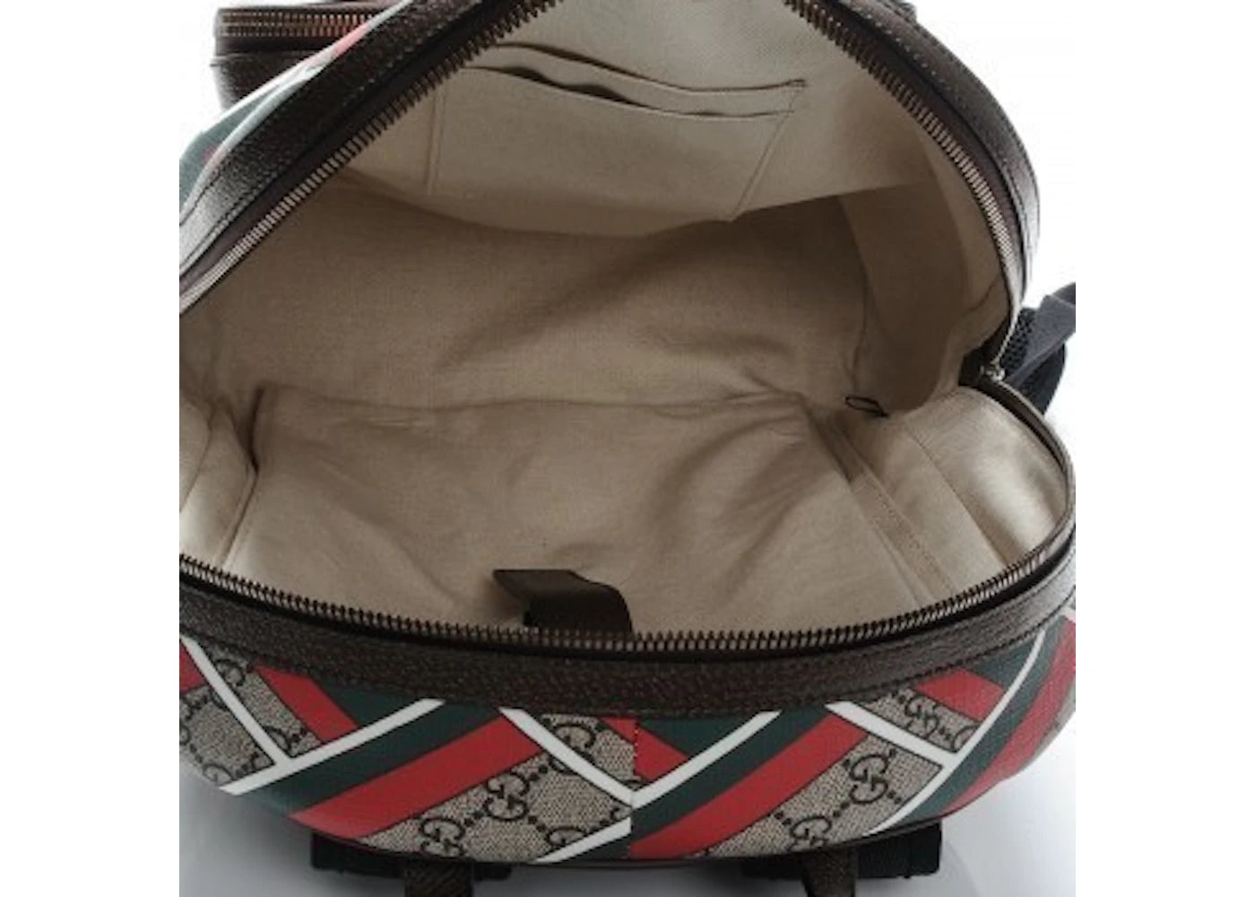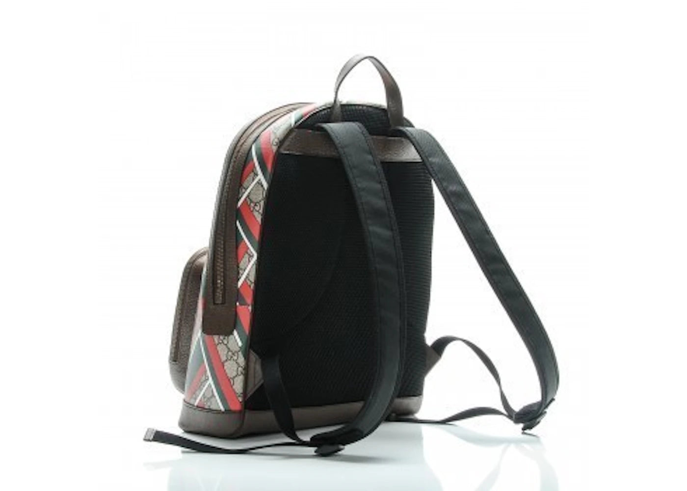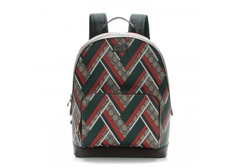 The Gucci Chevron Print Backpack GG Supreme Monogram Medium Brown/Green/Red is now available at Side Kicks!