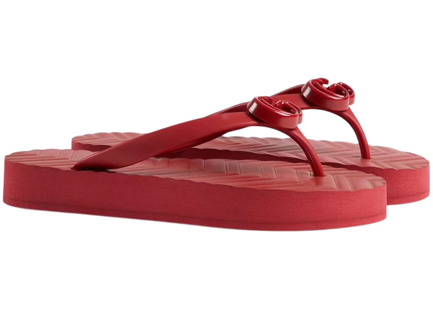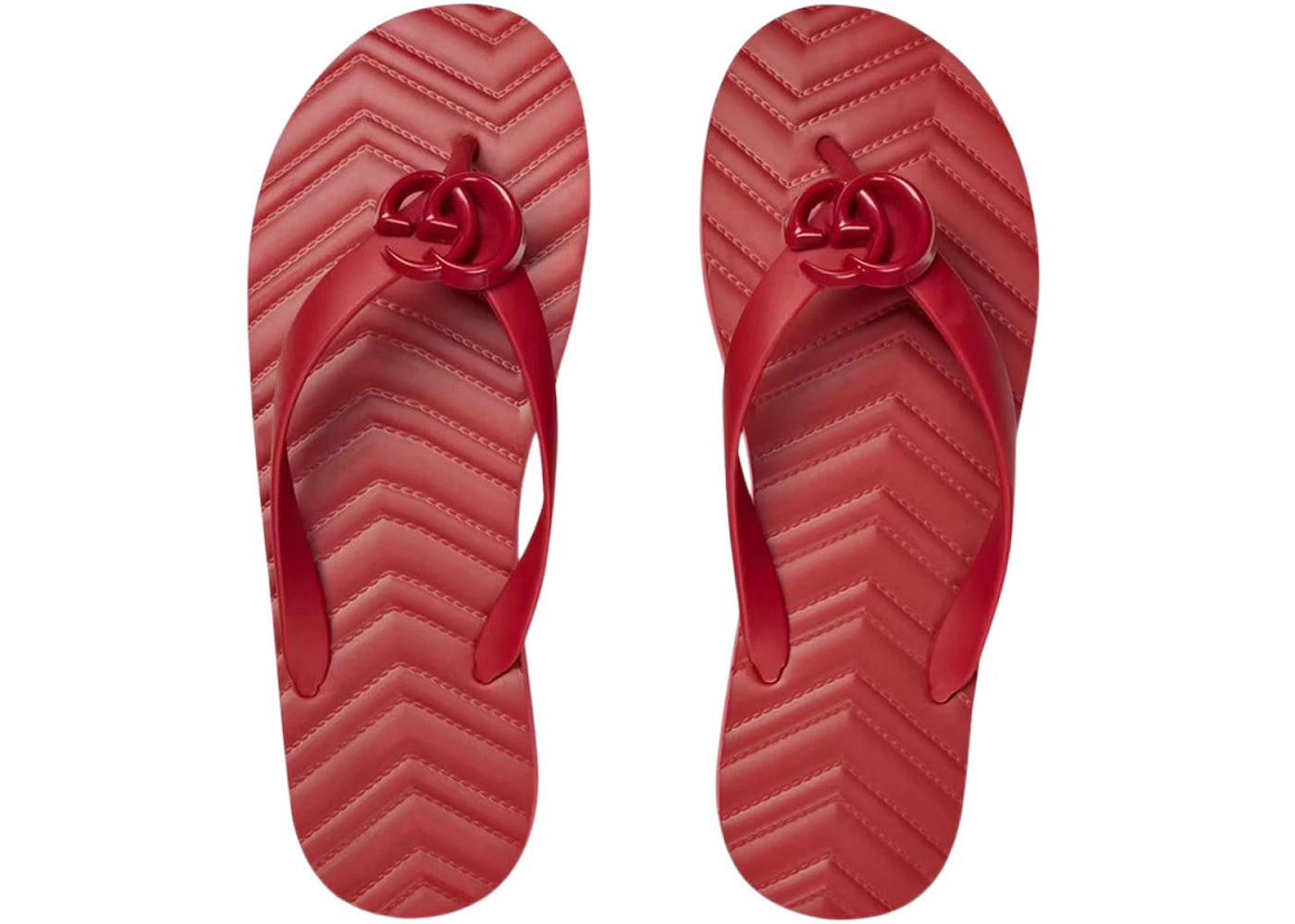The Gucci Chevron Thong Sandal Hibiscus Red Rubber is now available at Side Kicks!