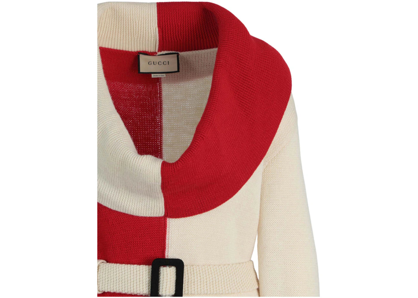 The Gucci Chunky Wool Belted Sweater White/Red is now available at Side Kicks!