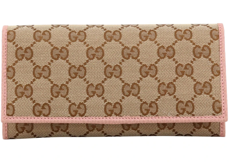 Gucci Continental Long Flap Wallet GG Supreme Pink Lining
